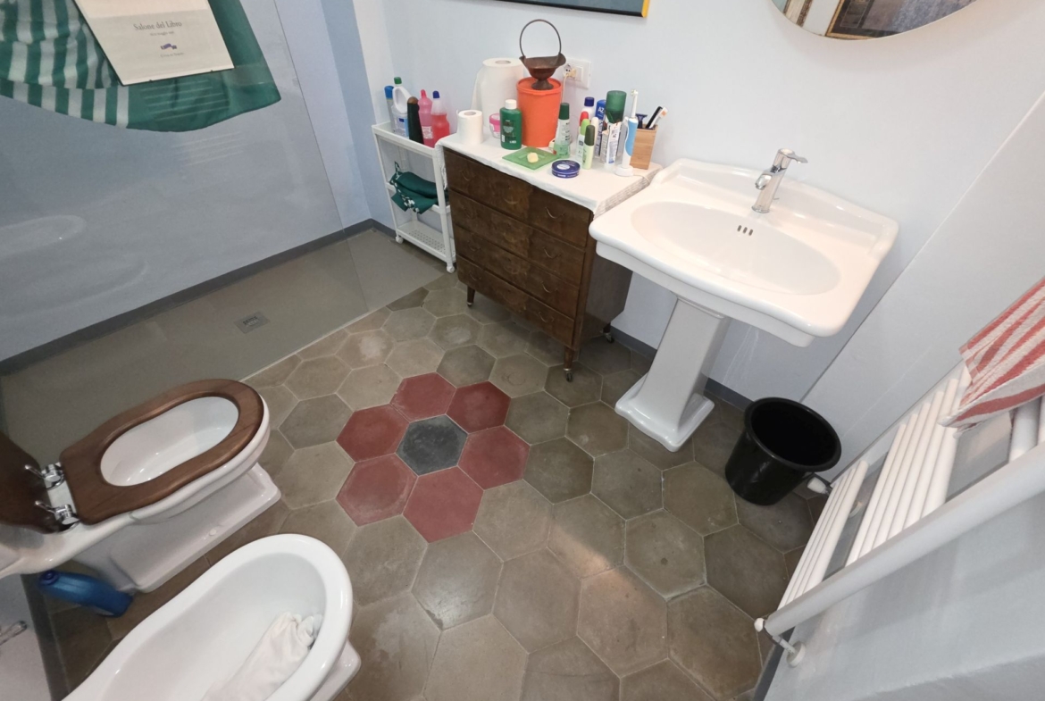 p.1: cinque camere, due disimpegni, due bagni mq 217