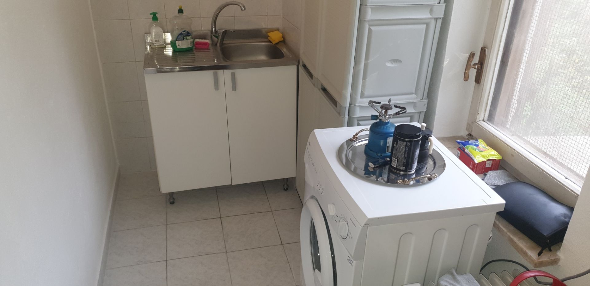 p.t.. cucina, soggiorno, due camere, bagno mq 80 / balcone mq 3