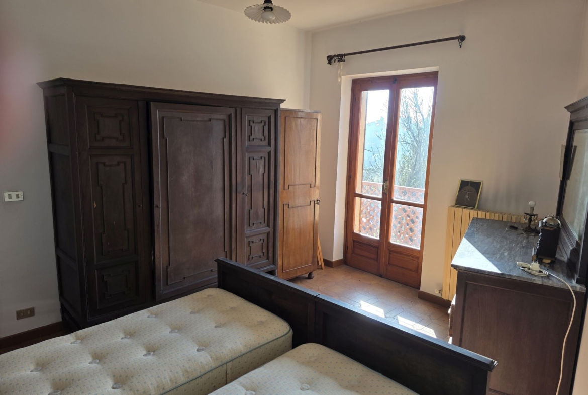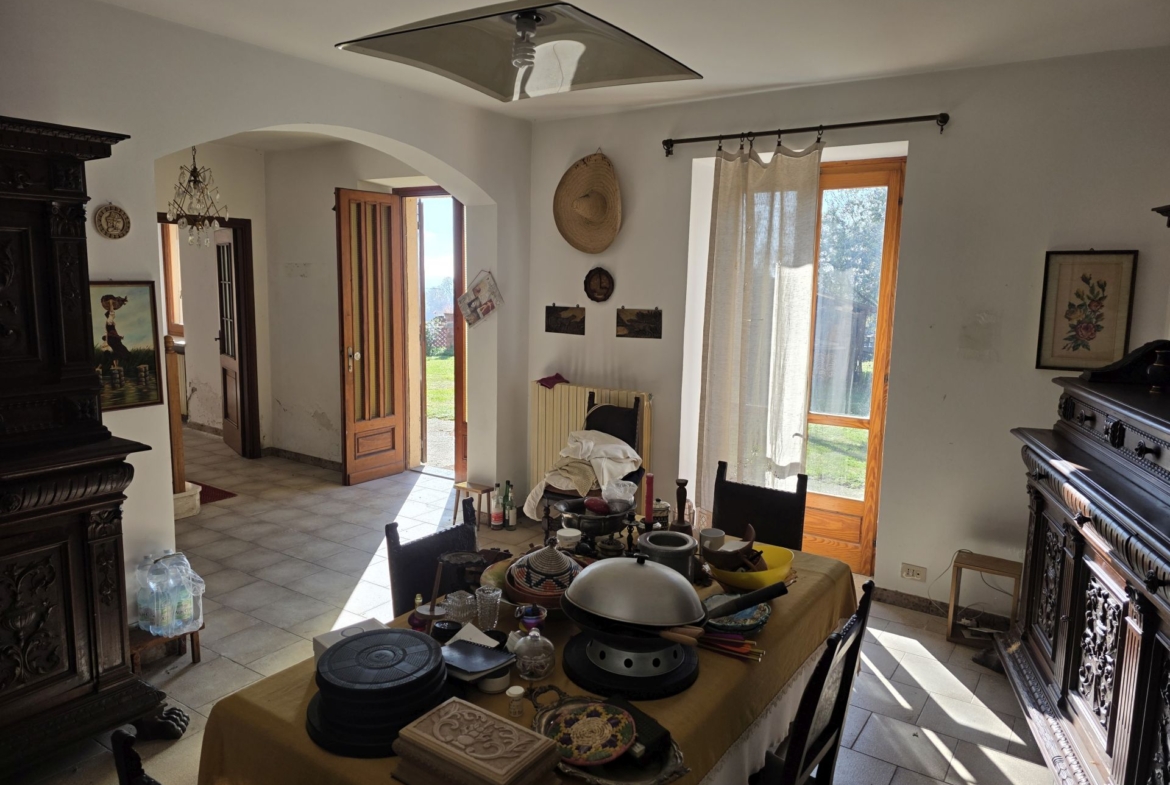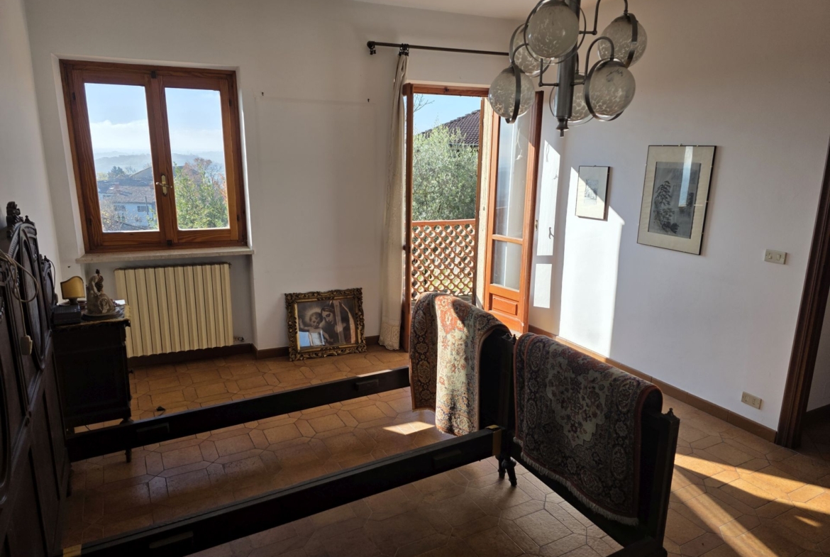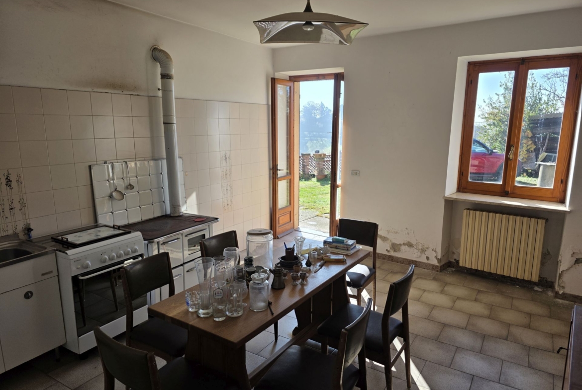 In posizione collinare, affacciata verso un superbo panorama, vendesi casa di campagna indipendente su tre lati con giardino antistante di 500 mq e terreno/bosco di proprietà dietro l’abitazione.