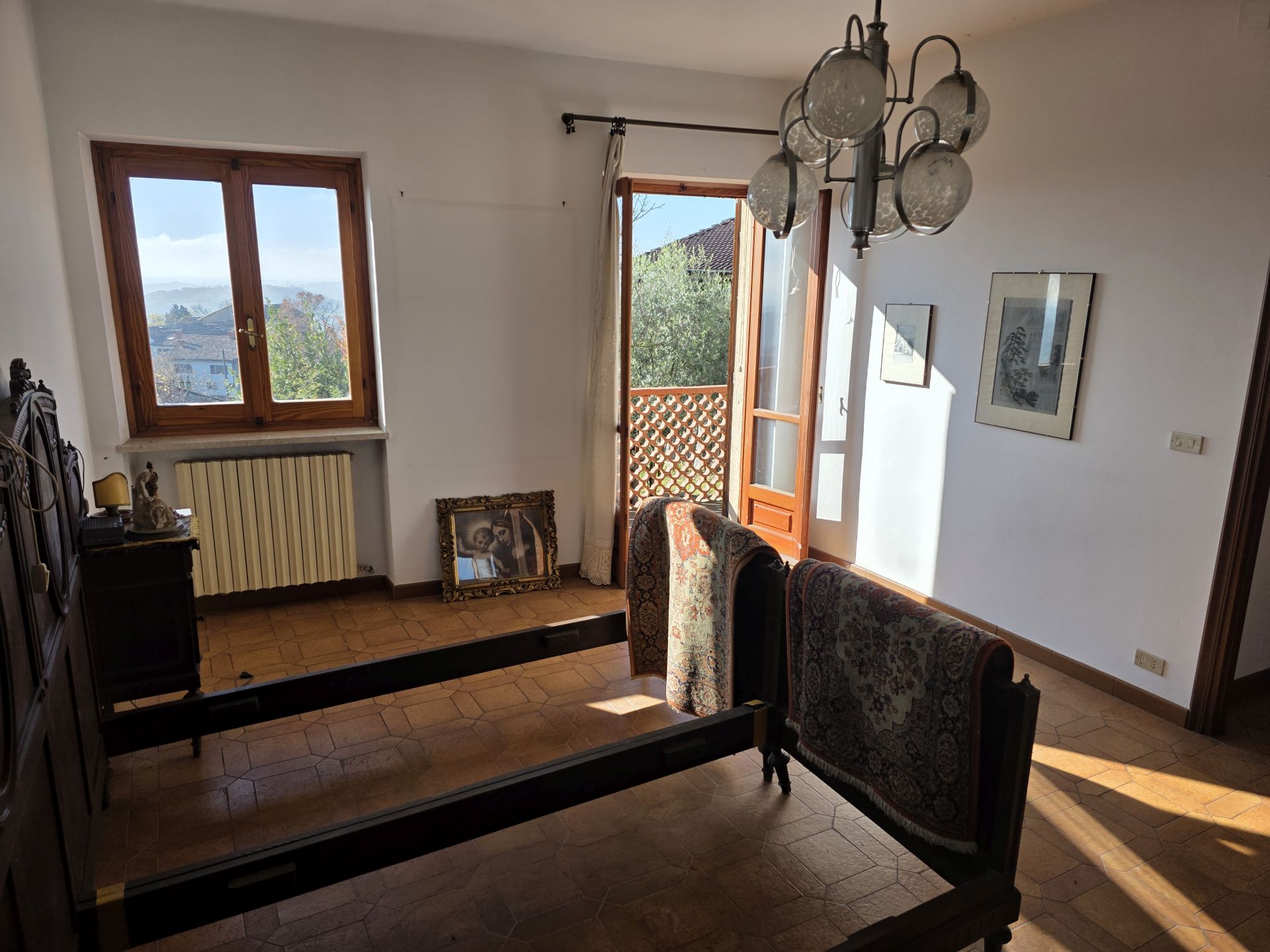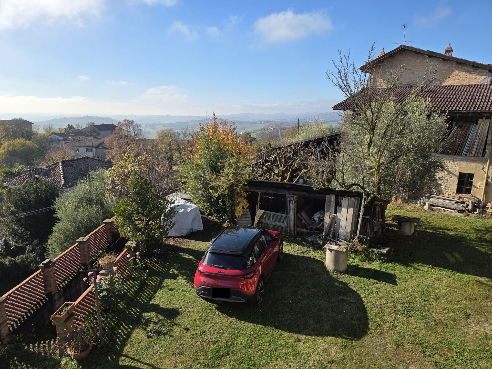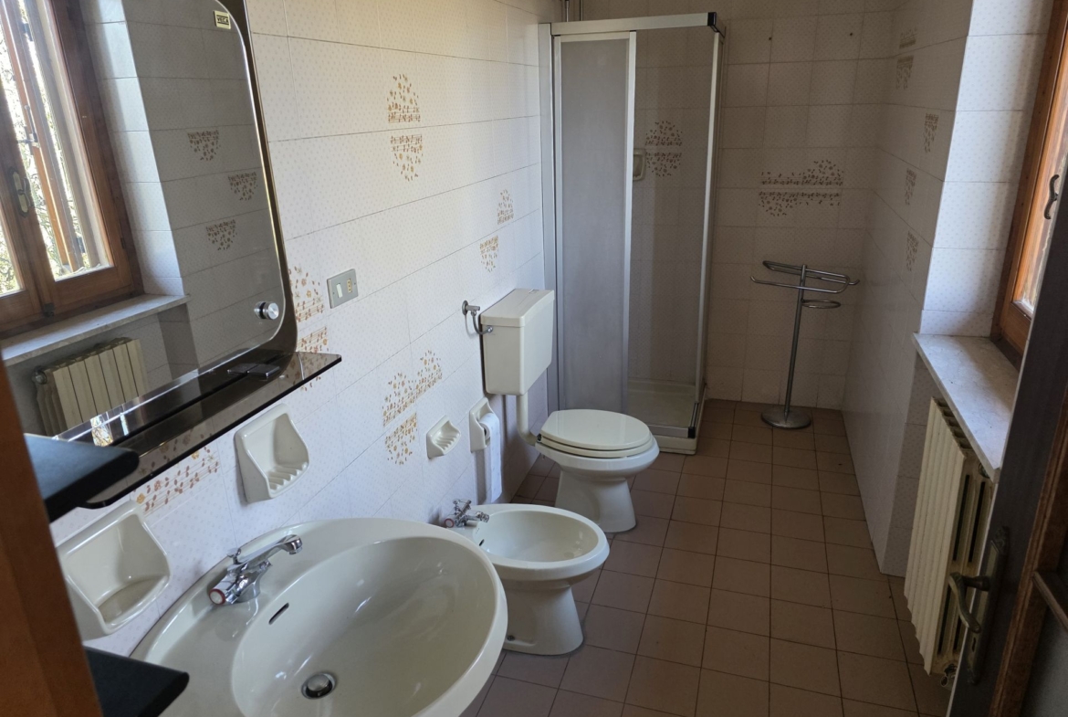 In posizione collinare, affacciata verso un superbo panorama, vendesi casa di campagna indipendente su tre lati con giardino antistante di 500 mq e terreno/bosco di proprietà dietro l’abitazione.