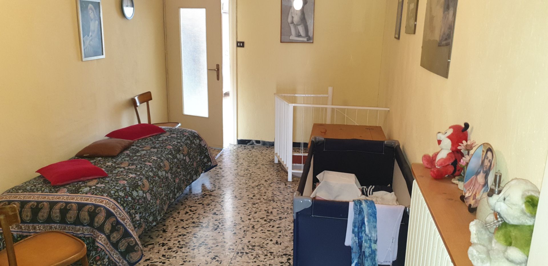 In centro paese, vicino a tutti i servizi principali, vendesi casa in buone condizioni e subito abitabile, con piccolo giardino privato e garage di pertinenza.