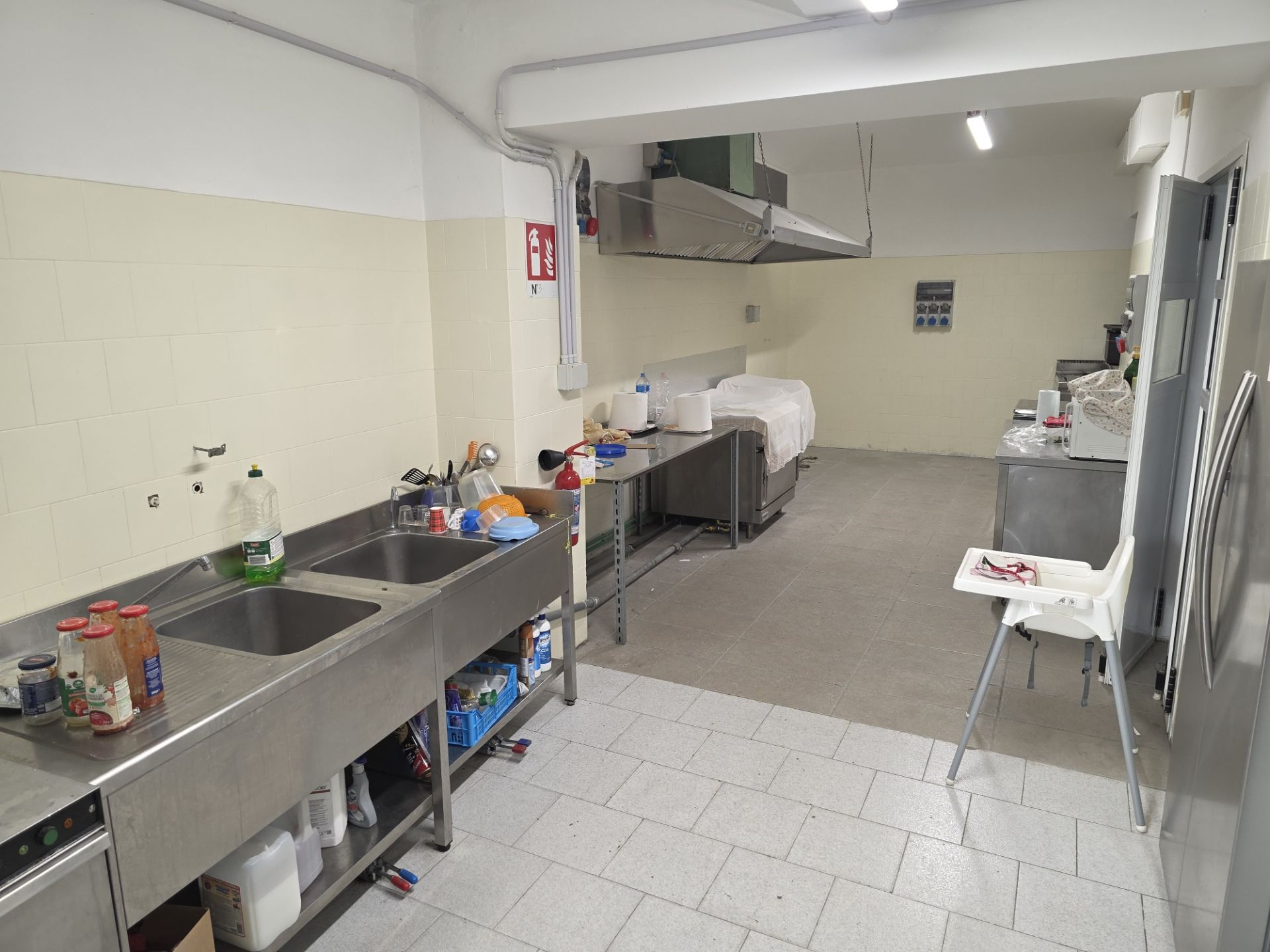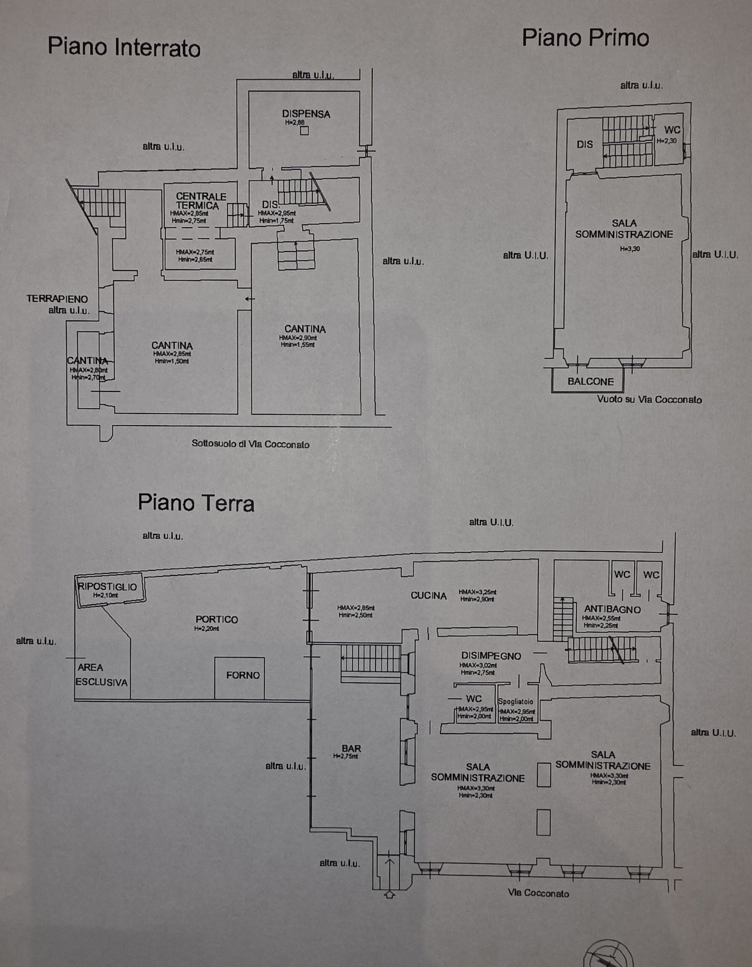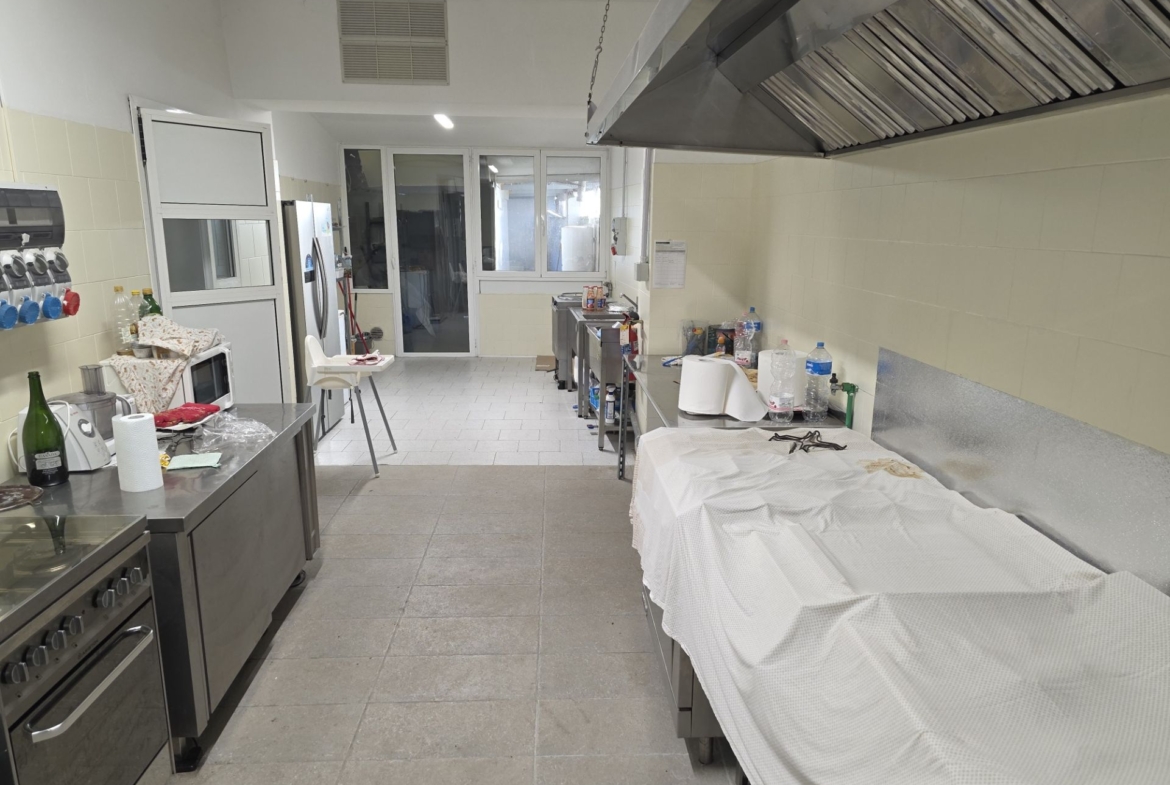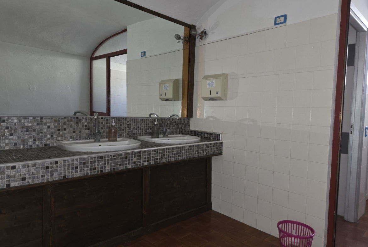 p.t.: tre locali, disimpegno, due bagni, spogliatoio, cucina mq 220