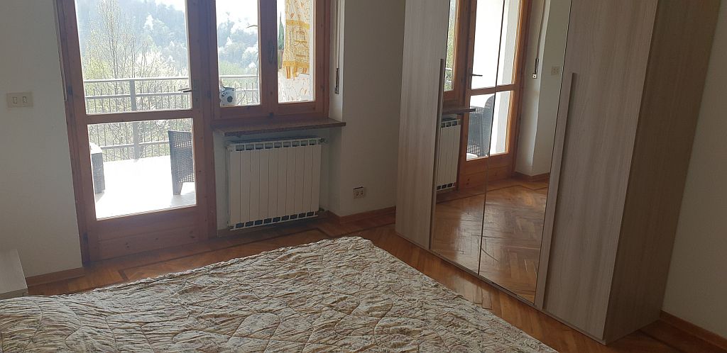 In tranquilla borgata collinare, esposta verso un gradevole panorama verdeggiante, affittasi porzione di villa ammobiliata ( circa 100 mq), con giardino privato (circa 400 mq).
