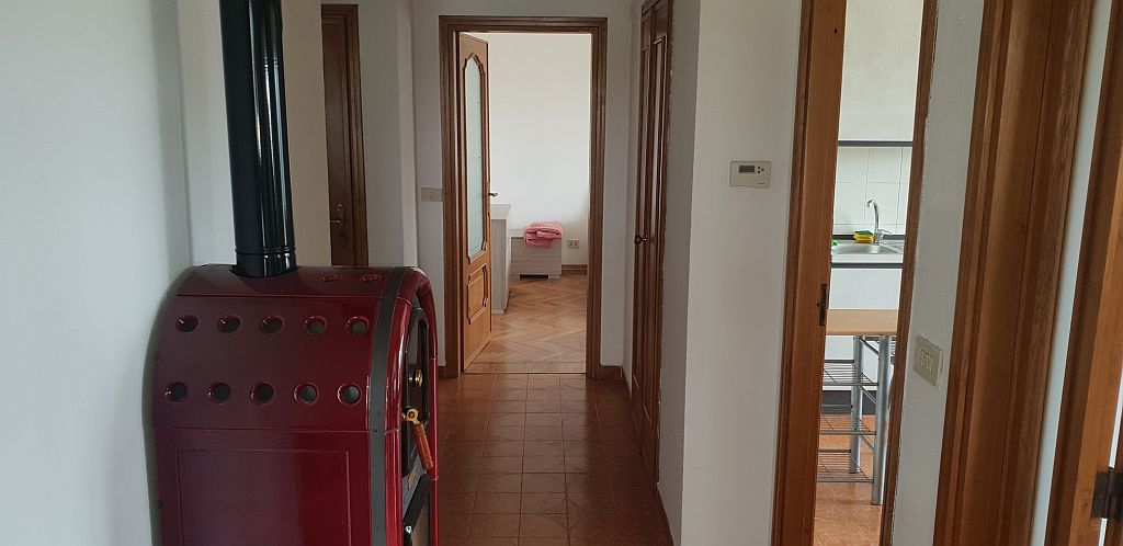 L’immobile si compone di cucina, salotto, due camere con pavimentazione in parquet, bagno con vasca, terrazzo, porticato.